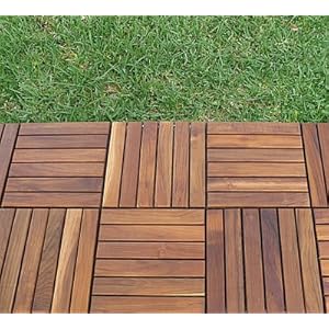 Le click Teak Flooring Tiles CLASSIC - Box of 10 Tiles, Oiled Honey Brown (Teak Oiled Honey Brown) (12"H x 12"W x 1"D)